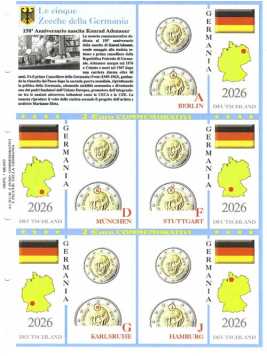 (A) Pagine 2 € x 5 zecche Germania 2026 - Konrad Adenauer