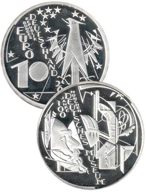 10 euro argento Germania 2003, in qualità proof, commemorativa del 100° Anniversario del Museo di Monaco, in capsula, Tiratura : 350.000 esemplari. Peso 18.00 - Diametro 32,5 - Tipo Argento , Proof - Anno 2003 - Metallo: Ag 925/1000-