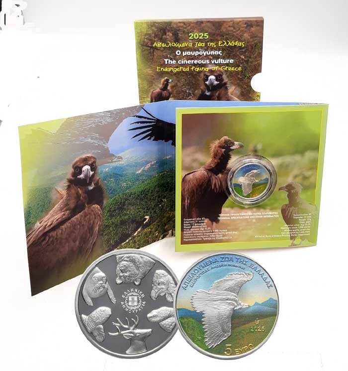 • 5 € Argento colorato Proof Grecia 2025 - L’AVVOLTOIO MONACO