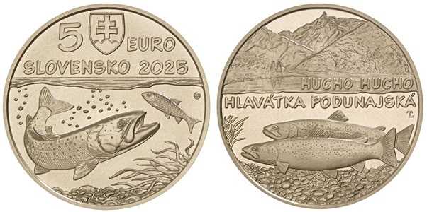 • 5 € Slovacchia 2025 - Flora e fauna slovacca - Il Salmone del Danubio