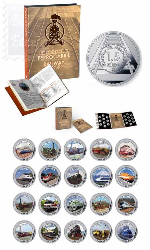 Collezione Completa 20 monete € 1,50 - Spagna 2021/22 - Storia delle Ferrovie -