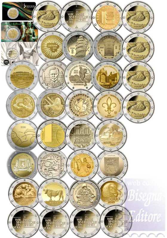 • Collezione Completa EXTRA LARGE - 2 Euro Commemorativi 2025 (37 monete comprese le 5 Zecche di Germania)