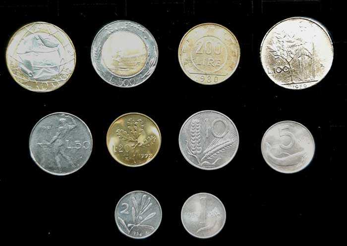 1 - 2 - 5 - 10 - 20 -50 -100 -200 - 500 - 1000 lire qualita MB