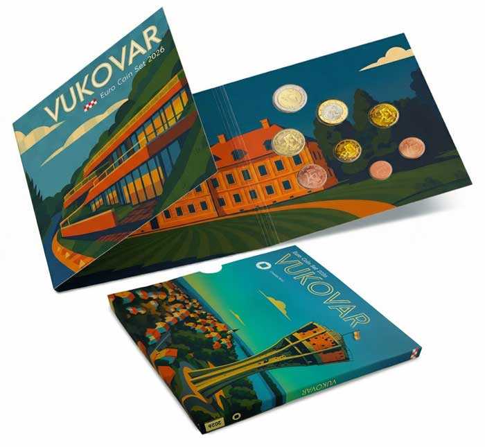 La Zecca croata ha emesso una nuova serie ufficiale di monete in euro. Questo set contiene monete circolanti in euro e centesimi di euro con anno di conio 2026. Questa edizione presenta Vukovar, città alla confluenza dei fiumi Vuka e Danubio, luogo d'incontro di storia, commercio e cultura. Il suo sviluppo nel corso dei secoli è stato plasmato dalle vie d'acqua e dai collegamenti commerciali, e tracce di questi periodi sono ancora oggi visibili nell'architettura barocca e classicista del centro città. Il Castello di Eltz, con la sua lunga tradizione aristocratica, e la Torre dell'Acqua di Vukovar, diventata un forte simbolo della città, fanno parte dell'identità che rende Vukovar riconoscibile nel panorama croato. La serie di monete in euro Vukovar 2026 in qualità fior di conio assoluto è stata emessa in una serie limitata di 5.000 pezzi.
