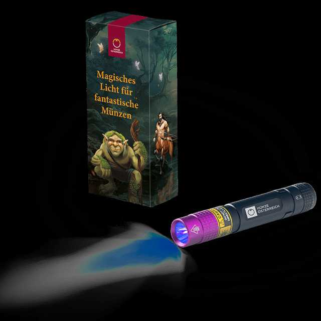 Riportando in vita antichi miti, ogni moneta da 3 euro della serie Creature Mitiche raffigura un essere leggendario che può essere risvegliato con la luce UV. Dal drago alla sirena, le creature brillano di una misteriosa luminosità, le loro forme si trasformano e sembrano uscire direttamente dalla moneta. Goditi la magia in qualsiasi momento con la nostra comoda torcia UV. Basta accenderla, puntarla sulla moneta e guardare i draghi prendere fuoco, le sirene brillare sotto le onde e i troll brillare di una luce ultraterrena. Ogni moneta diventa più di un semplice oggetto da collezione: è un'esperienza avvincente in cui fantasia, storia e tecnologia moderna si incontrano nel palmo della tua mano.