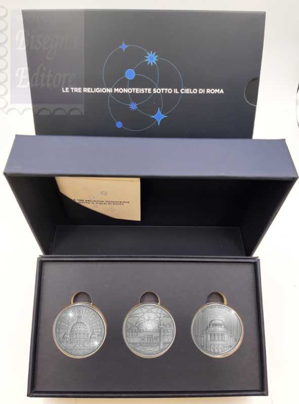 • Trittico 3 euro Italia Ag.2025 - Le tre religioni monoteiste sotto il cielo di Roma